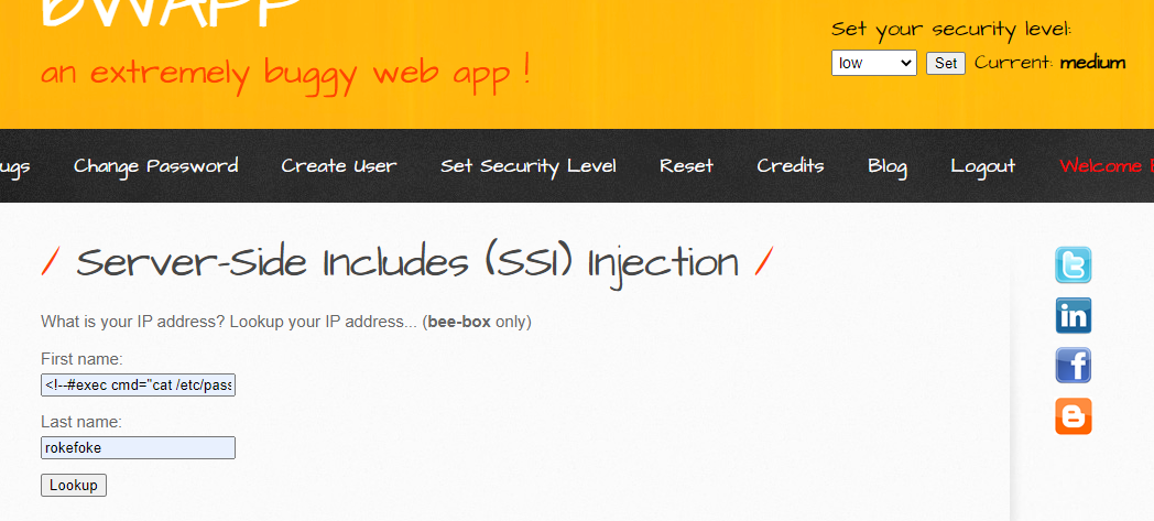 이를 바탕으로 Bee Box를 High level을 제외하고 공격해보도록 하겠습니다.