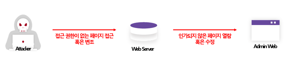 위의 사진은 권한이 없는 페이지에 접근하는 공격자를 표현한 그림입니다.