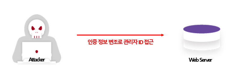 위의 사진을 보면 인증정보를 변조하여 관리자 ID를 접근하는 공격자를 그림으로 나타내 보았습니다.